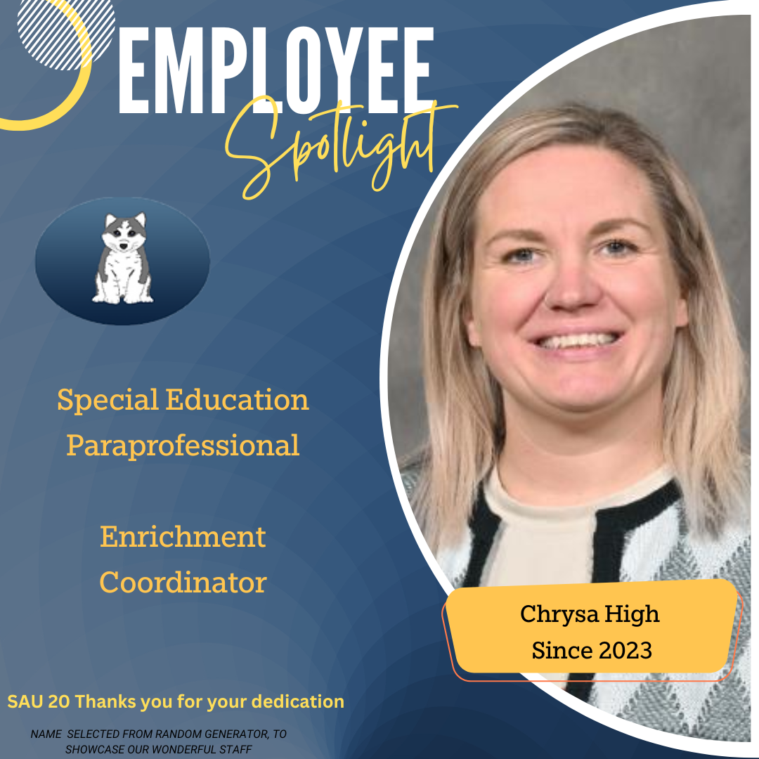 "The Mission of SAU 20 is to cooperatively support the success of the students of our communities by providing quality administrative services and being fiscally responsible."